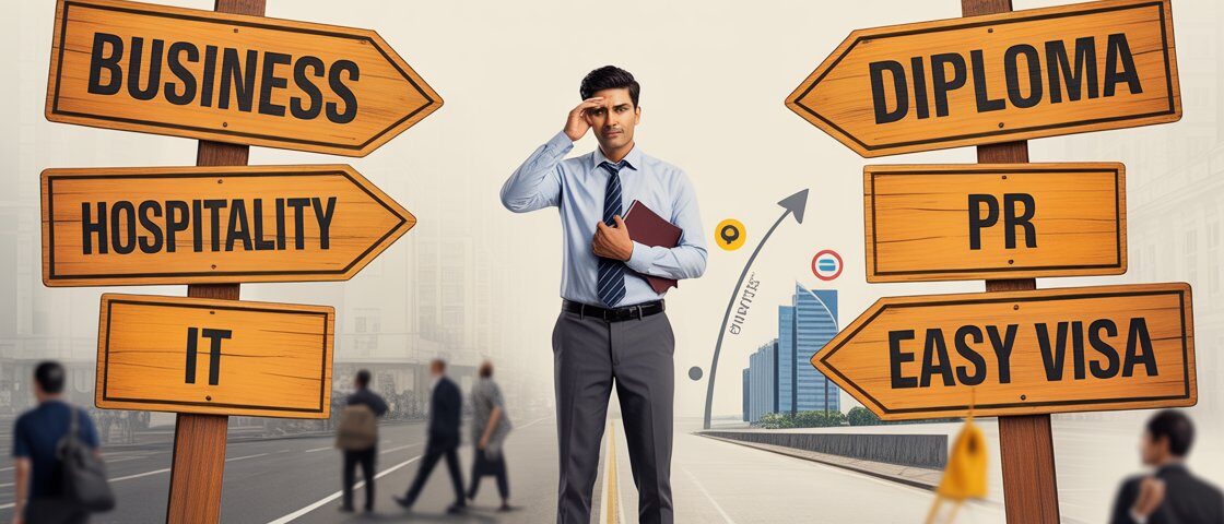 A lot of students have no idea what they want to be. So they settle for Business (because “everyone does it”), Hospitality (because “it’s easy”), or some random diploma (anything that will get the visa).